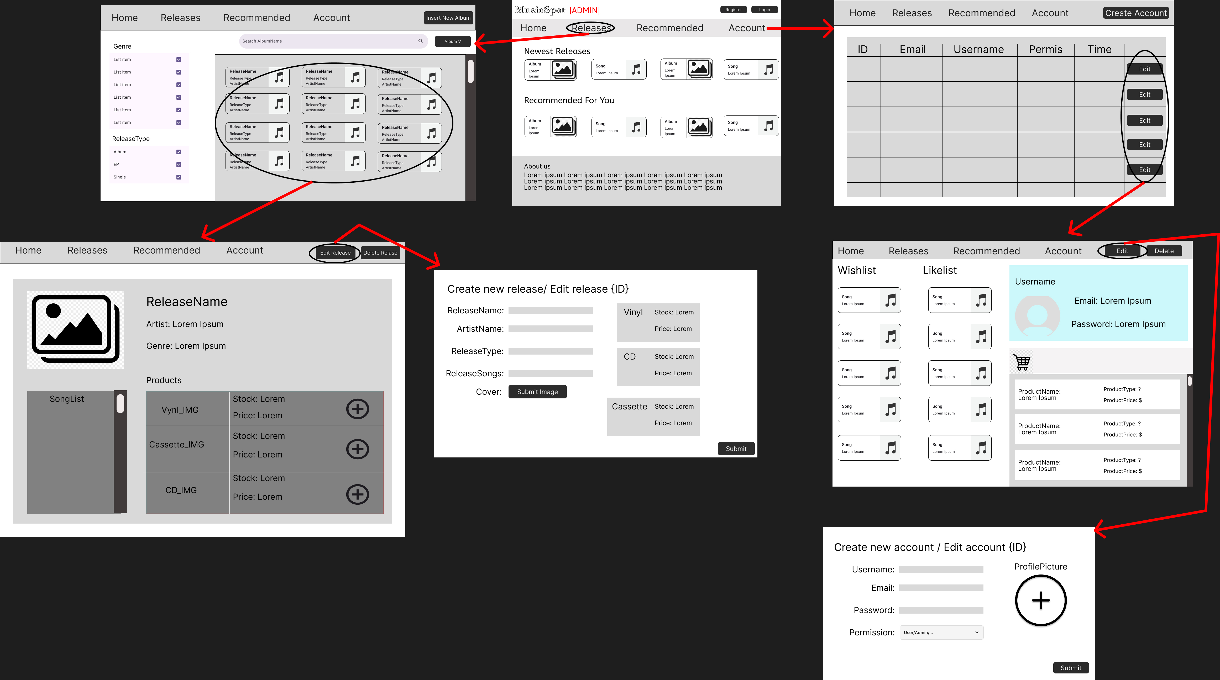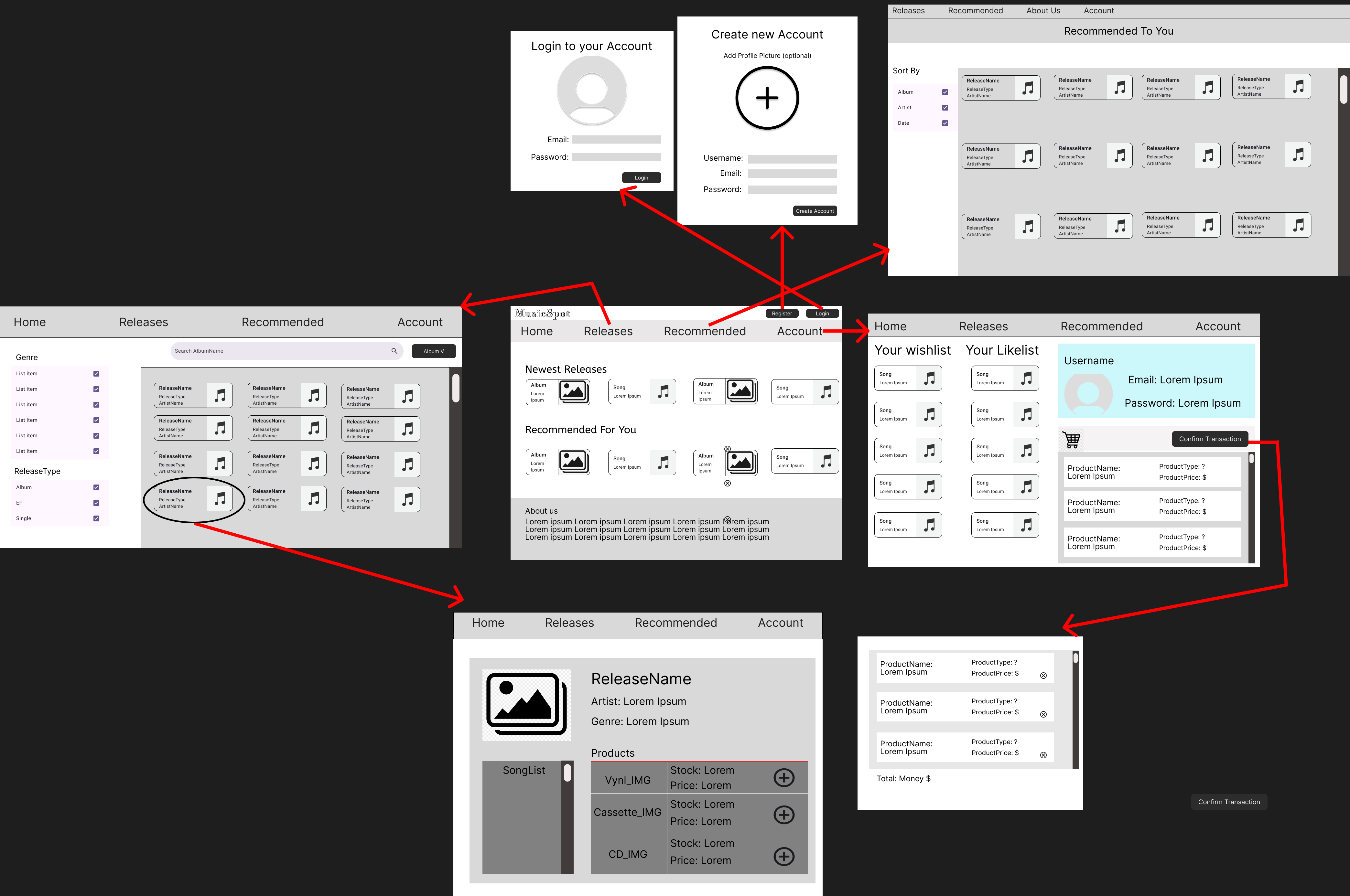 MusicSpot Wireframes